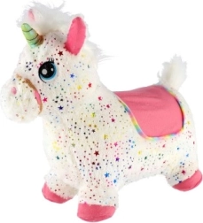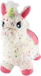 Cheval sauteur en peluche licorne avec son, blanc à étoiles