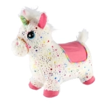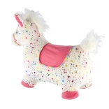 Adorable cheval sauteur en peluche en forme de licorne, qui ravira les tout-petits dès 12 mois. Grâce à sa forme ergonomique, à la hauteur d’assise de 23 cm et à sa housse douce amovible, les bonds sont sûrs et confortables. En appuyant sur le bouton, la licorne émet des sons amusants. Une pompe et des piles sont incluses pour un plaisir immédiat.