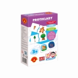 Un jeu éducatif amusant pour les plus petits qui apprend aux enfants à comprendre les contraires grâce à de grandes cartes en deux parties. Grâce à une forme d’assemblage unique, les enfants voient immédiatement s’ils ont trouvé la bonne paire. Développe le vocabulaire, le raisonnement logique, l’attention et la motricité fine.