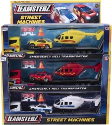 Découvrez le transport de voiture et hélicoptère Teamsterz, un ensemble parfait pour les petits passionnés de transport et de missions de sauvetage. Chaque ensemble comprend un camion transportant une voiture et un hélicoptère. Disponible en trois couleurs différentes - rouge, jaune et blanc.