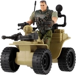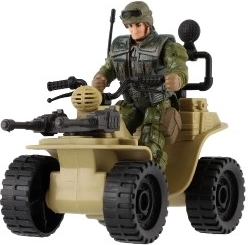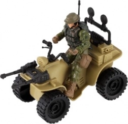 Ce quad offre des détails réalistes, y compris les vêtements de camouflage du soldat et les grands pneus noirs.