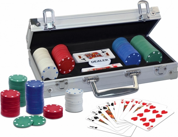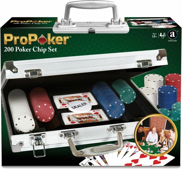 Joli mallette professionnelle avec accessoires pour le poker. Joue, amuse-toi et gagne. Tu as 200 jetons pour ça.