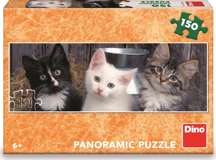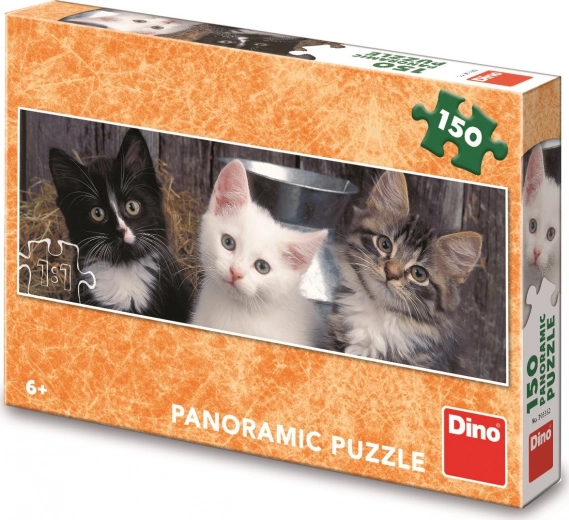 Puzzle panoramique Trois chatons, 150 pièces. Carton de qualité, fabriqué en République tchèque. Développe la concentration et l’imagination, idéal à exposer.