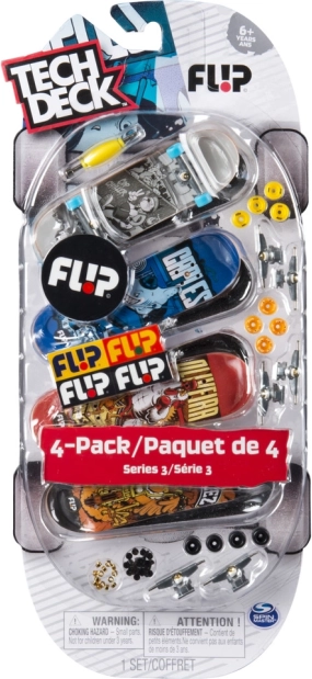 Le Tech Deck fingerboard – pack de quatre offre des sensations de ride réalistes au format de poche. Profite de decks, trucks et roues de précision pour travailler ollies, kickflips et combinaisons plus avancées. Grâce à la qualité de fabrication et aux graphismes authentiques de marques de skate légendaires, c’est le cadeau idéal pour tout fan de skateboard.