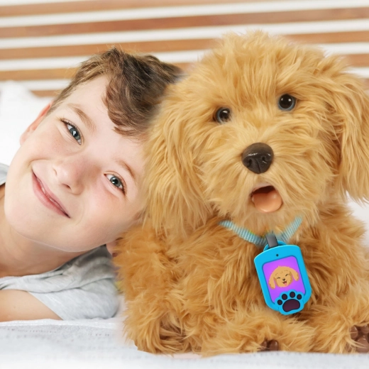 Moji est un chien interactif câlin avec une fourrure toute douce et une expression adorable qui conquiert vite le cœur des enfants. Grâce à des capteurs de pointe et à un collier intelligent avec écran, il réagit de manière réaliste à son environnement, apprend des commandes et communique ses besoins et son humeur.