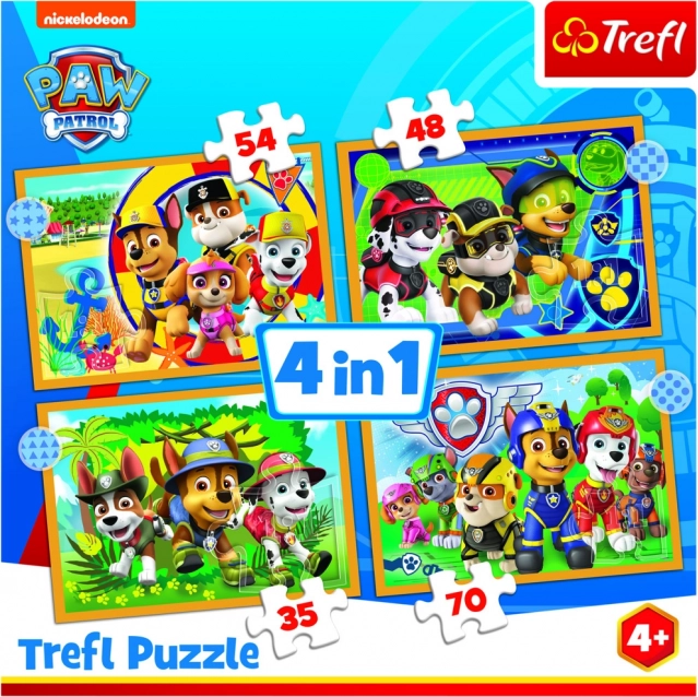 Le set comprend quatre motifs différents des héros de la série La Pat' Patrouille : Marcus, Chase, Stella, Ruben, Zuma et Rocky. Chaque puzzle possède un nombre différent de pièces - 35, 48, 54 et 70 pièces - ce qui aide les enfants à apprendre à compter et à développer des compétences mathématiques.