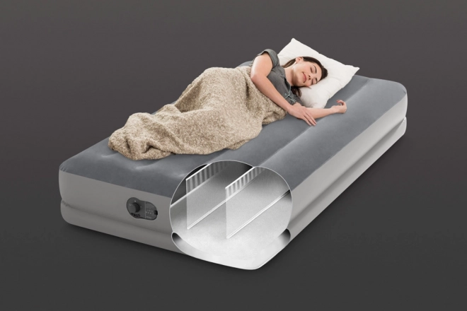Matelas gonflable de dimensions 99 cm x 1,91 m x 30 cm. Capacité de charge maximale 136 kg. Temps de gonflage 3,5 minutes. Gonflage, dégonflage et stockage faciles. Pompe électrique intégrée.