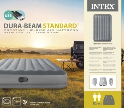 Matelas gonflable de 152 cm x 203 cm x 30 cm. Charge maximale 272 kg. Temps de gonflage 5,5 minutes. Gonflage, dégonflage et rangement faciles. Pompe électrique intégrée.