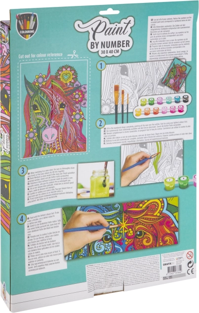 Découvrez la magie de la peinture par numéros et créez votre propre tableau au motif de licorne. Le kit sur toile 30 × 40 cm contient tout ce dont vous avez besoin : toile préimprimée, peintures acryliques et 3 pinceaux. La peinture est facile, relaxante et développe la motricité fine ainsi que la concentration.