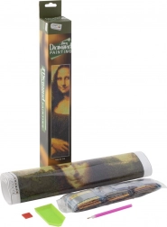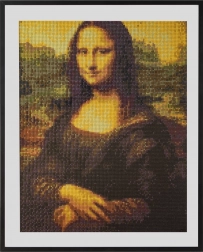 Découvrez la magie de la peinture diamant avec le tableau de la Mona Lisa de dimensions 40x50 cm. La création avec de petits strass colorés procure des heures de relaxation et des résultats fascinants.