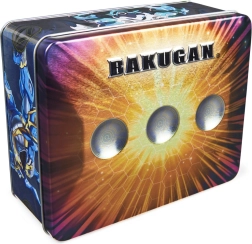 Boîte métallique élégante au nouveau design, pouvant contenir jusqu’à 6 Bakugan, 2 paquets de 40 cartes et 12 Baku‑jetons. L’ensemble comprend 1 boîte métallique avec couvercle, 1 Bakugan exclusif, 1 Bakugan mystère, 4 Baku‑jetons, 2 cartes de personnage, 2 cartes Gate. Convient à partir de 6 ans.