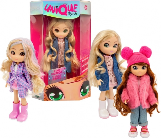 Découvrez la magie de la poupée Unique Eyes – une poupée stylée de 25 cm avec des yeux magiques qui vous suivent, de longs cheveux soyeux et une tenue à la mode avec des chaussures. Disponible en 3 versions différentes, idéale pour les enfants à partir de 3 ans.
