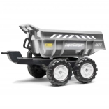 Remorque « Super dumper » à quatre roues, de couleur grise. Compatible avec les tracteurs Falk. Fabriquée en France en plastique de haute qualité.
