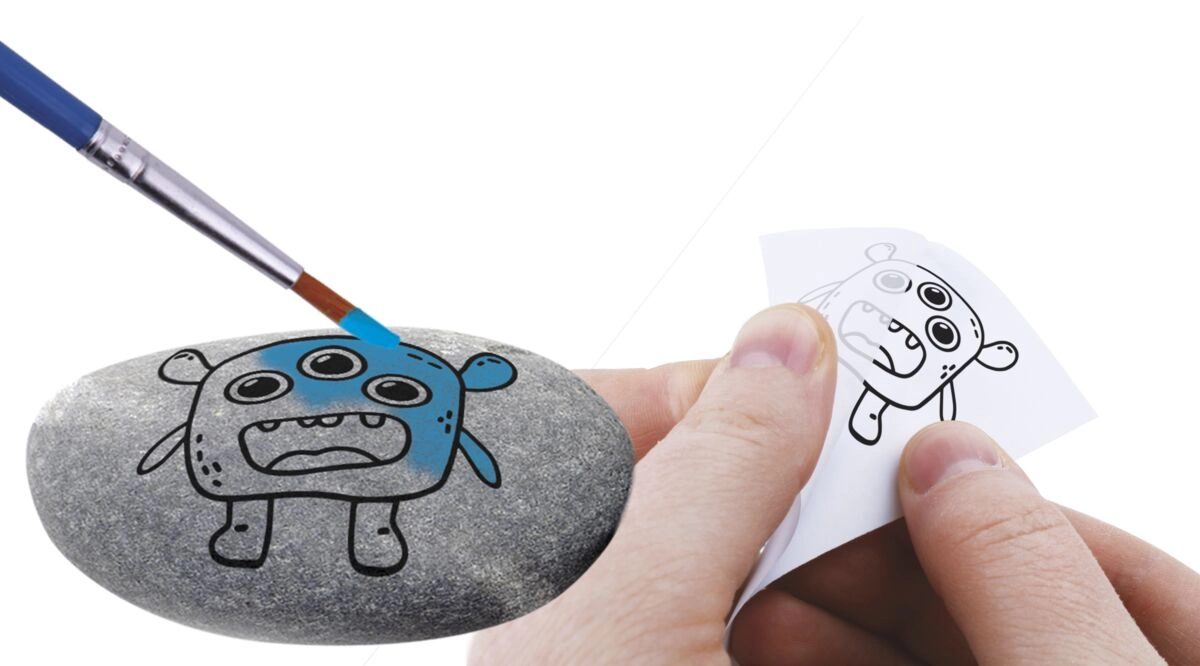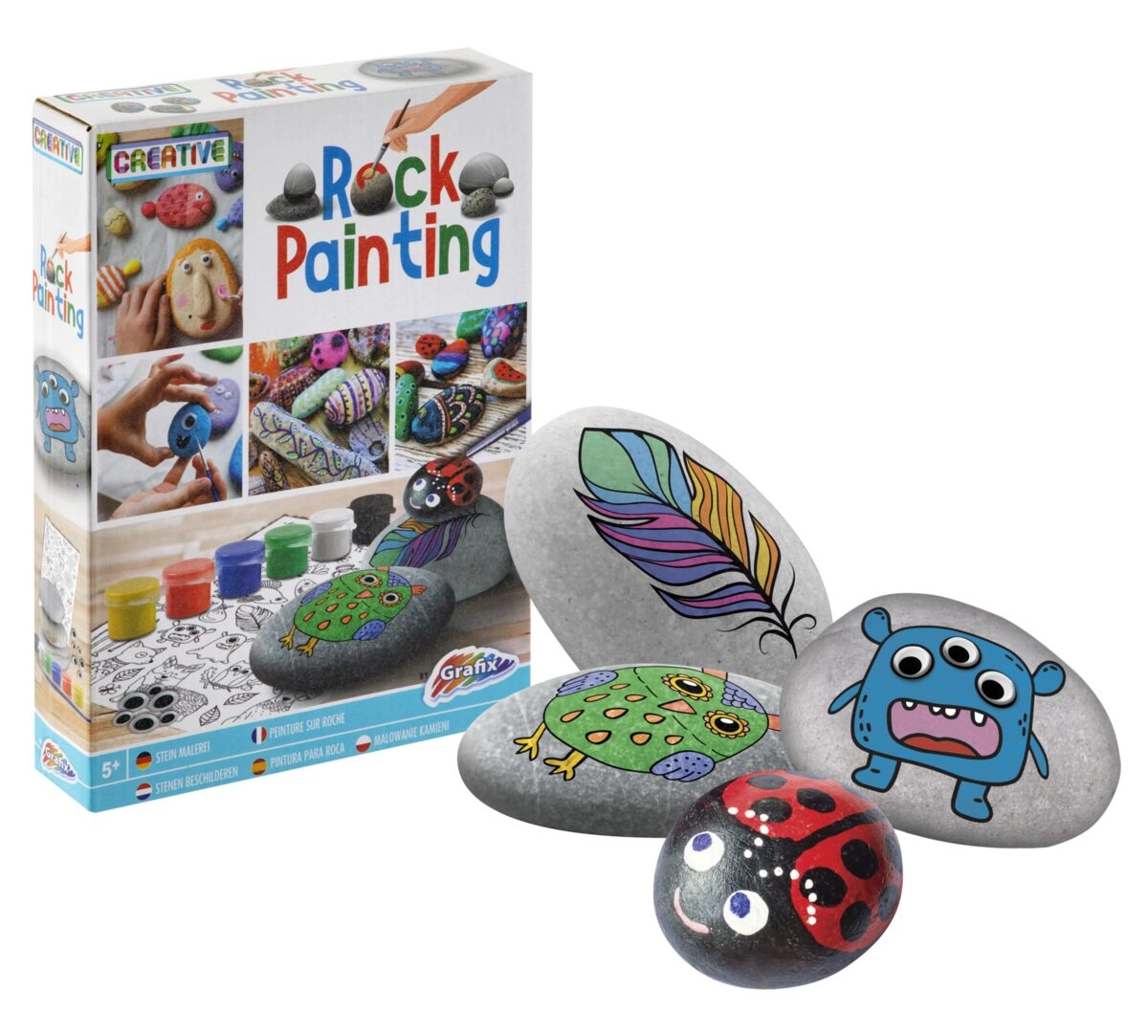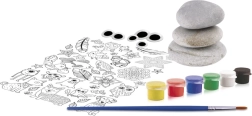 Ce kit créatif transforme de simples galets en petits monstres, poissons, visages et autres décorations originales. Il suffit d’appliquer un motif autocollant, d’ajouter des yeux mobiles et de décorer avec six couleurs intenses. Grâce au pinceau inclus et aux galets lisses, les enfants réalisent de jolies créations sans expérience préalable.