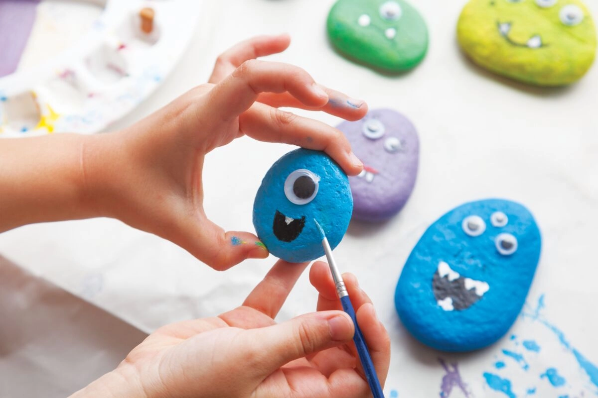 Le kit comprend tout ce dont les enfants ont besoin : galets lisses, 6 couleurs, un pinceau, des autocollants et des yeux mobiles. Ouvrez la boîte et commencez à créer sans achats supplémentaires.