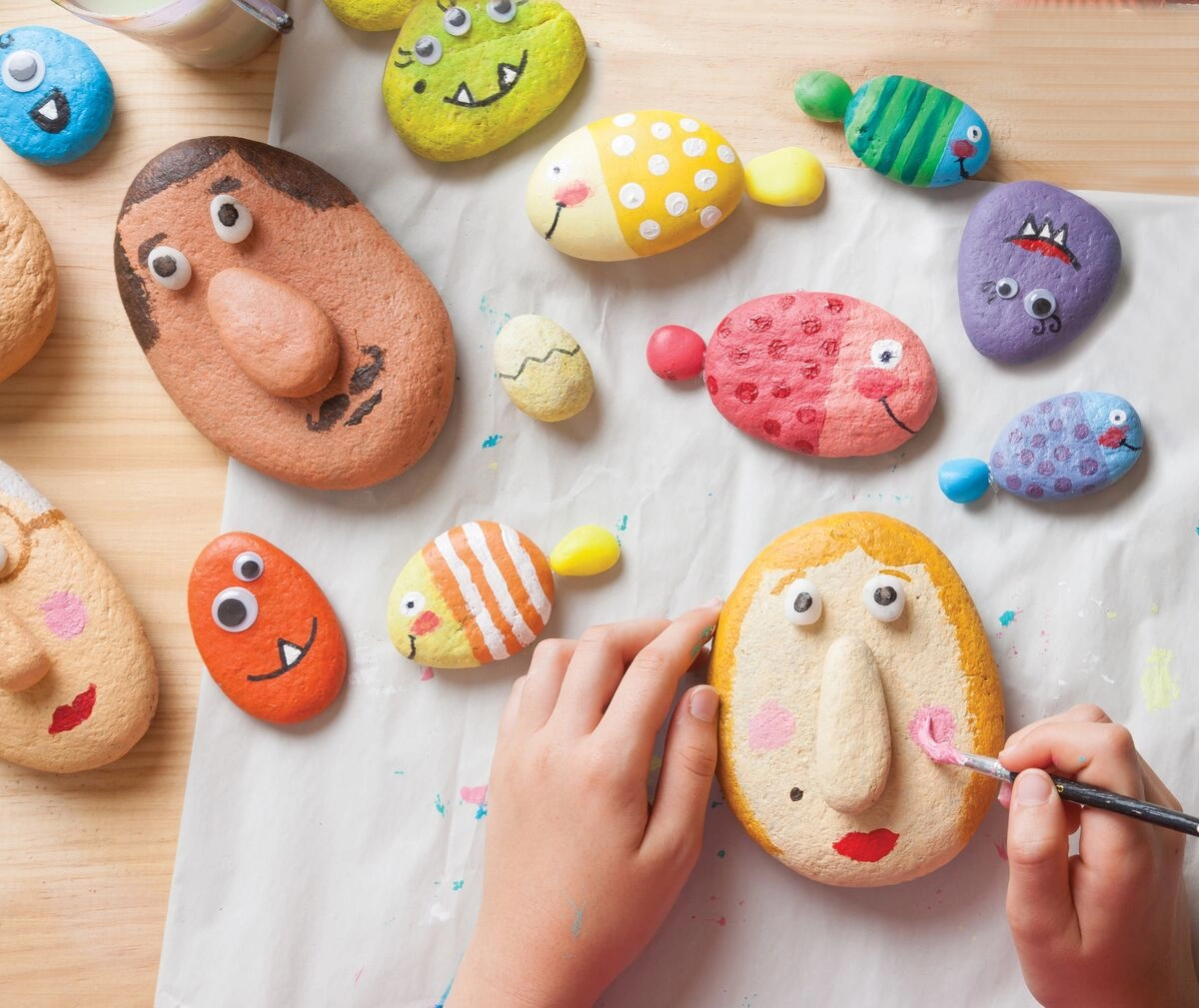 Créez des visages, des poissons et de petits monstres adorables et expressifs – les yeux mobiles et les détails en relief donnent aux galets un caractère unique.
