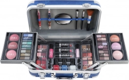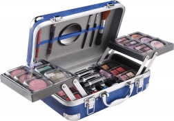 Mallette cosmétique avec coins en aluminium Travel Blue avec miroir intégré – au total 84 pièces d’accessoires.