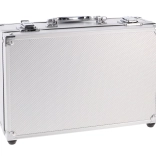 La mallette argentée avec fermetures et poignée solide protège les cosmétiques et facilite le transport à la maison comme en déplacement.