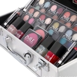 Le set comprend 32 fards à paupières, 4 rouges à lèvres, 4 vernis à ongles, 2 blushs, 3 crayons pour les yeux, 1 crayon pour les lèvres, 3 applicateurs double embout, 1 pinceau et un boîtier amovible avec miroir, fards et blush. Le tout est testé dermatologiquement et répond aux normes strictes de l’UE, pour un maquillage de qualité et en toute sécurité à la maison comme en voyage.