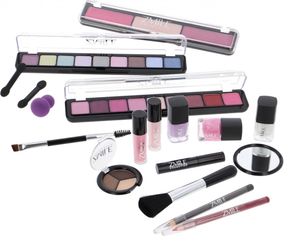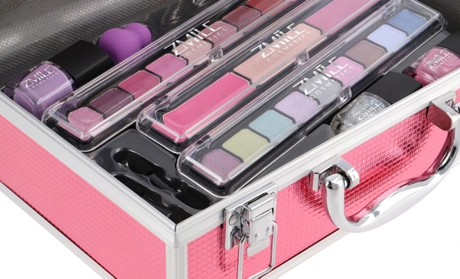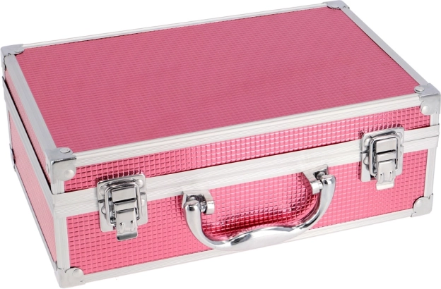 Trousse de maquillage Marry Berry avec cadre en aluminium et miroir intégré – au total 38 accessoires. Contient 18× fards à paupières, 2× blushs, 1× enlumineur, 1× cire pour sourcils, 2× gloss pour les lèvres, 3× vernis à ongles, 1× mascara, 1× crayon pour les yeux, 1× crayon pour les lèvres, 2× applicateurs double face pour fards, 1× applicateur double face pour sourcils, 1× pinceau à blush, 1× miroir rond et 1× mini éponge de maquillage. Testé dermatologiquement, conforme aux normes strictes de l’UE.
