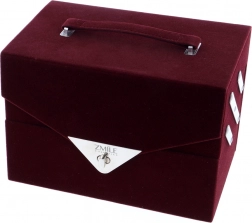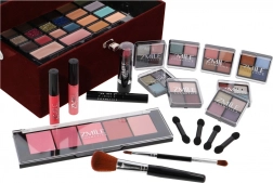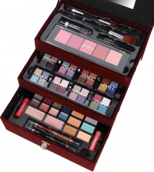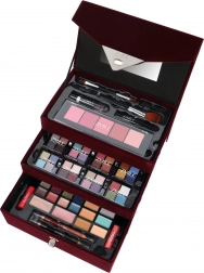 Trousse de maquillage en velours Beauty Case Velvety – velours bordeaux foncé – au total 74 pièces d’accessoires. Contient 32× fards à paupières en 4 palettes compactes, 5× blush, 3× fards à sourcils, 1× cire pour sourcils, 4× fards à paupières crème, 4× gel pailleté, 2× base pour fards à paupières, 8× correcteur, 2× gloss, 1× rouge à lèvres, 1× mascara, 1× crayon double embout pour les yeux, 1× crayon double embout pour les lèvres, 1× pinceau à blush, 1× pinceau double embout pour fards, 4× applicateur double embout, 1× miroir intégré. Testé dermatologiquement, conforme aux normes strictes de l’UE.