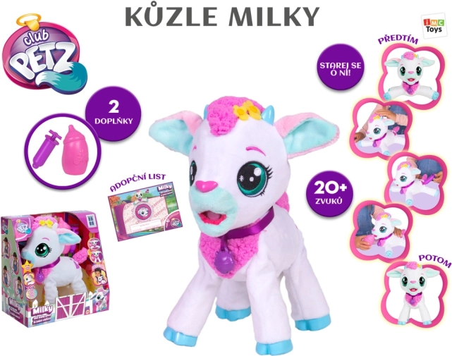 La chèvre Milky est équipée jusqu'à 20 sons différents qui réagissent au toucher et à la manipulation, procurant ainsi des expériences réalistes.