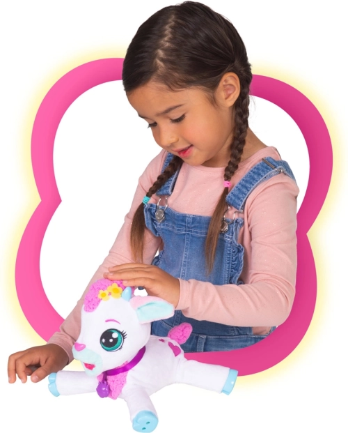 Vos enfants tomberont sous le charme de ce merveilleux petit chevreau interactif qui réagit au toucher et offre des heures infinies de divertissement. Prenez soin de la chèvre en la caressant sur la tête, en la nourrissant avec un biberon et même en la vaccinant. Grâce aux éléments interactifs, la chèvre se met à quatre pattes, imitant ainsi un véritable animal.