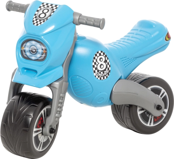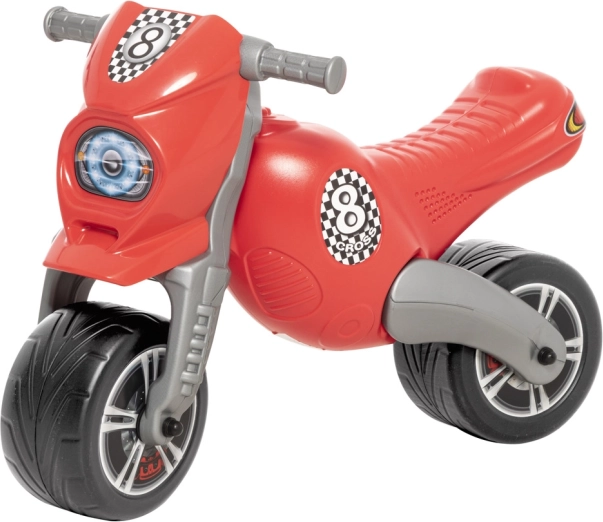 Draisienne en plastique au style moto Cross 8 avec de grosses roues en plastique pour une stabilité accrue, idéale pour les enfants de 3 à 5 ans.