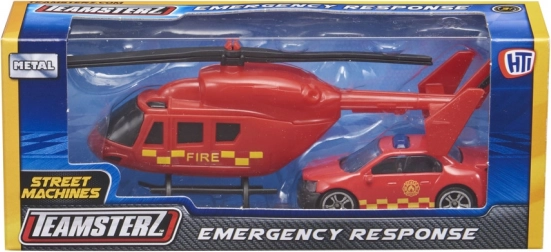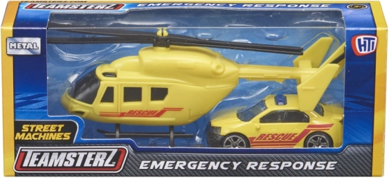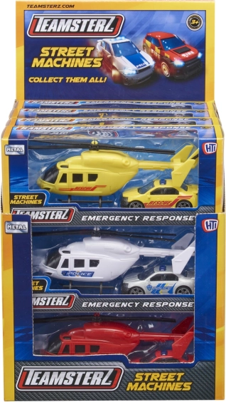 Le set TEAMSTERZ allie amusement et résistance : un hélicoptère détaillé avec pales manuelles et un véhicule d’intervention dynamique avec roues libres. Grâce au châssis en métal moulé sous pression et à des pièces plastiques de qualité, les enfants profitent d’un jeu réaliste sur la police, les pompiers et les secouristes.