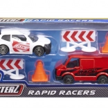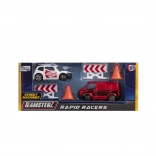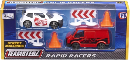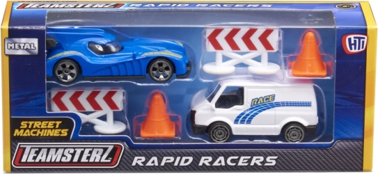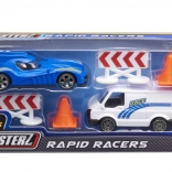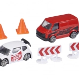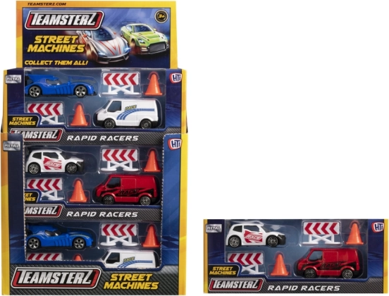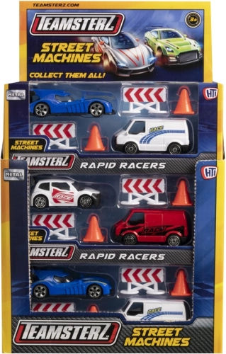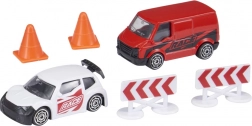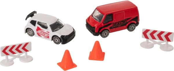 Les modèles de la gamme Street Machines se distinguent par leur carrosserie moulée sous pression, leur fabrication robuste et leur roulement fluide. Le set inclut également 2 cônes de circulation et 2 barrières directionnelles pour un jeu encore plus réaliste. Disponible en différentes couleurs et styles (assortiment).