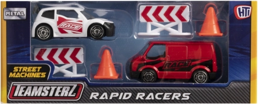 Préparez-vous à courir à la maison comme en déplacement. Le set TEAMSTERZ RAPID RACERS combine une voiture métallique réaliste et un camion de support de course avec accessoires, grâce auxquels les enfants construisent facilement leur propre circuit et testent différents scénarios de course. Le format compact 3″ est idéal pour les petites mains comme pour les collectionneurs.