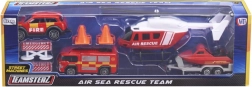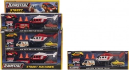 Préparez-vous pour vos propres missions de sauvetage sur terre comme sur l’eau avec le set Teamsterz ! Il comprend une hélicoptère moulée sous pression avec pales à rotation manuelle, un véhicule d’intervention, un 4x4 avec dispositif d’attelage, un bateau avec remorque et des accessoires d’urgence. La carrosserie moulée sous pression de qualité et les roues libres garantissent des heures de jeu imaginatif pour les enfants à partir de 3 ans.