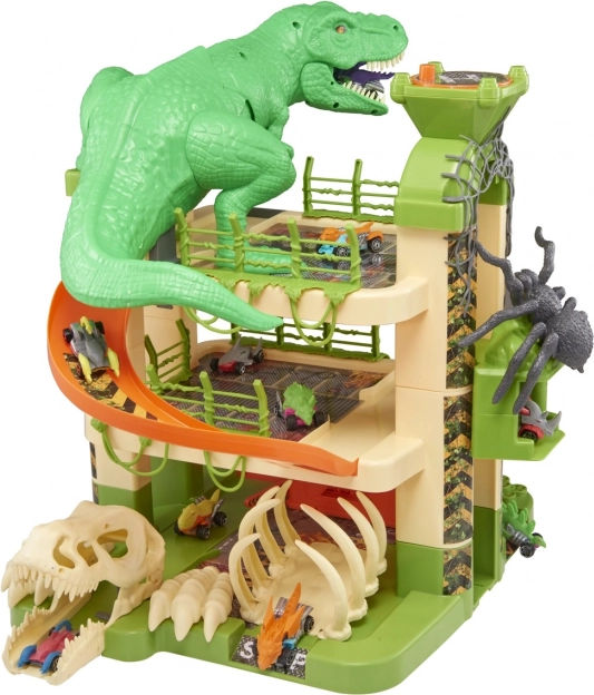 - Garage avec cage, tête de dinosaure et lanceur ; 1 voiture en métal