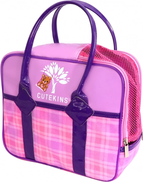 Le sac à motif à carreaux rose‑violet avec fermeture éclair est idéal pour transporter la peluche et de petits trésors. Grâce aux anses solides, il tient bien dans la main de l’enfant. Le style CUTEKINS séduit par ses couleurs et son motif d’ourson ludique, pour faire plaisir à chaque sortie.