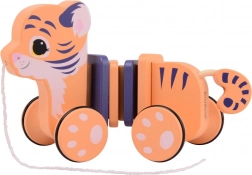 Ce joyeux jouet à tirer en bois de haute qualité est équipé de roues au lieu de pattes, permettant un mouvement fluide lorsqu’on le tire par la ficelle. En se déplaçant, son corps ondule grâce aux rectangles colorés sur le dos, ce qui capte l’attention des enfants et favorise l’apprentissage des couleurs. Le jouet est fabriqué en bois certifié FSC, garantissant une provenance de forêts gérées durablement.