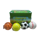 Amusante balle souple et ultra-légère de 9,6 cm de diamètre, qui rebondit comme une balle sauteuse classique. Disponible en assortiment de motifs (sport, animaux, fruits), adaptée aux enfants dès 3 ans.