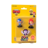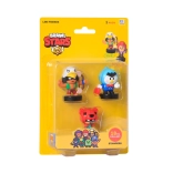 Le set comprend trois figurines de collection sur le thème de Brawl Stars aux couleurs vives, emballé dans un blister jaune.