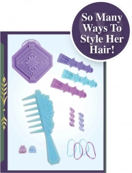 Les enfants peuvent non seulement brosser et créer différentes coiffures sur les cheveux d’Elsa, mais aussi utiliser de ravissantes barrettes pour décorer et styliser ses boucles. La tête de coiffure Elsa est idéale pour les enfants dès 3 ans qui aiment le jeu créatif et la mode.