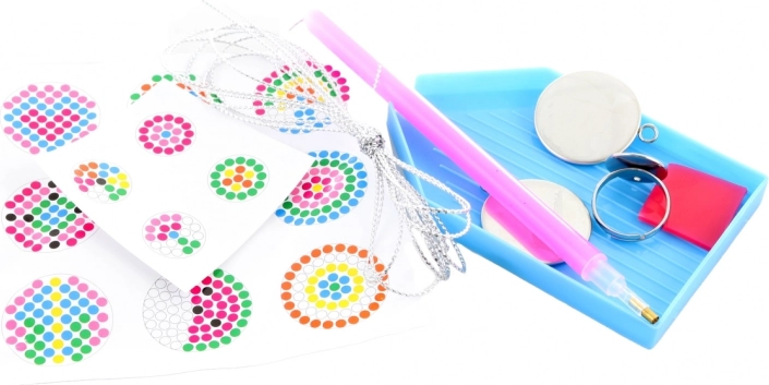Tout le nécessaire dans une seule boîte: strass colorés en 8 teintes, base pour pendentif et bague, cordon pour le cou, plateau pratique et applicateur. La procédure intuitive convient aux débutants et garantit une création rapide et amusante sans désordre.