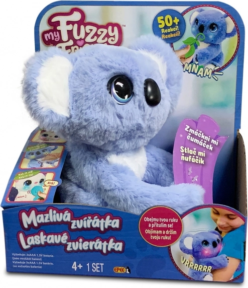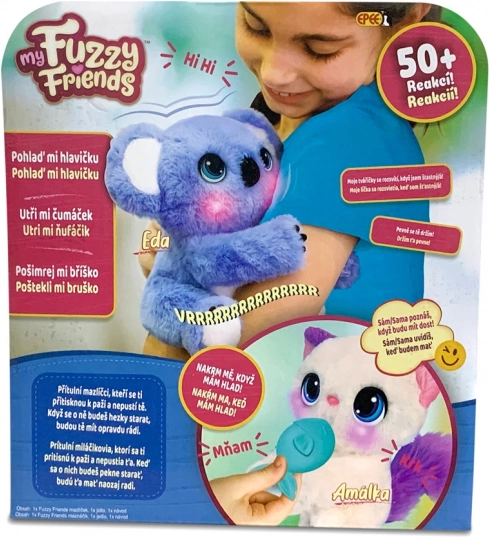 Découvrez la magie de la peluche interactive koala Eda de la gamme My Fuzzy Friends. Cet ami câlin réagit au toucher et à l’interaction de plus de 50 façons différentes, y compris par des sons et des mouvements. Eda possède des articulations spéciales lui permettant d’enlacer le bras d’un enfant et de s’y blottir. Vous pouvez caresser la koala, la chatouiller, la nourrir, lui essuyer le nez et même l’aider à s’endormir.