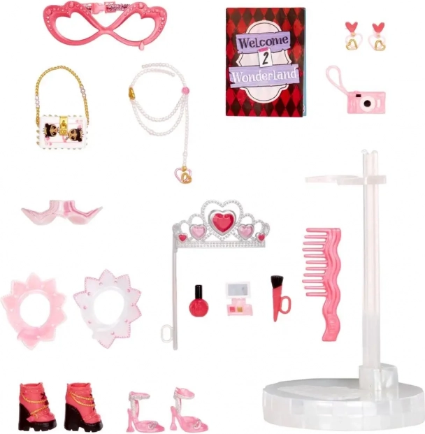 Le coffret comprend plus de 15 surprises, dont des accessoires, des chaussures, des bijoux, des lunettes et une couronne. L’emballage se déplie facilement en une scène de jeu pratique – idéal pour jouer immédiatement et exposer la poupée.