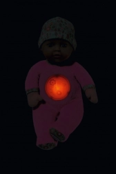 Cette poupée toute douce de 30 cm est un compagnon idéal pour le berceau et le lit de bébé. Grâce à la veilleuse intégrée et à la douce berceuse, elle apaise bébé et l’aide à s’endormir plus facilement. Son corps textile moelleux, sa grenouillère en peluche et sa tête en vinyle avec bonnet étoilé invitent aux câlins et aux jeux tout en douceur.