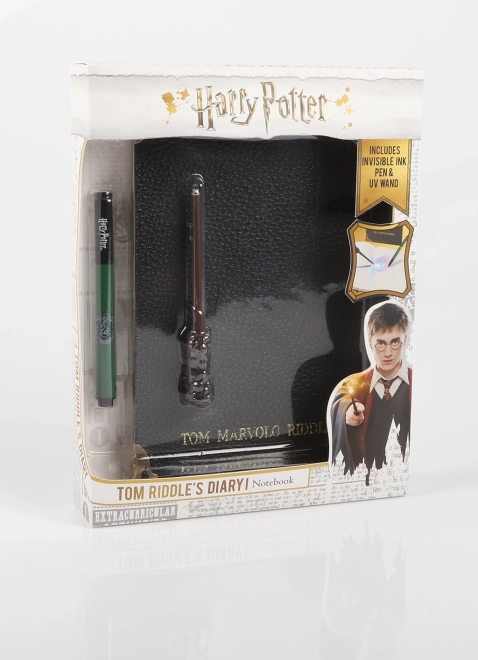 Entrez dans le monde de la magie avec l’élégant carnet de Tom Jedusor. Notez vos idées, entrées de journal ou messages codés à l’aide de l’encre invisible, visible uniquement sous la lumière UV de la baguette fournie. Idéal comme cadeau pour les fans de HARRY POTTER et parfait compagnon pour l’école, le travail et les voyages.