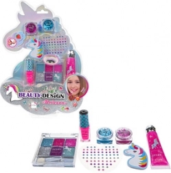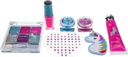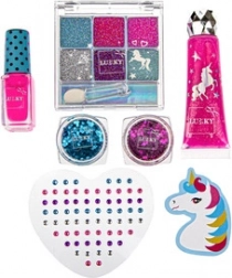 Éveillez l’imagination des enfants avec le coffret de maquillage LUKKY pour enfants au motif licorne. L’ensemble comprend des gels pailletés, un gloss parfumé, un vernis pelable, des fards à paupières pailletés avec applicateur, des autocollants‑pierres précieuses et une lime à ongles – idéal pour une activité créative et ludique dès 3 ans.