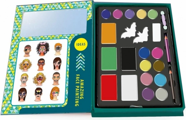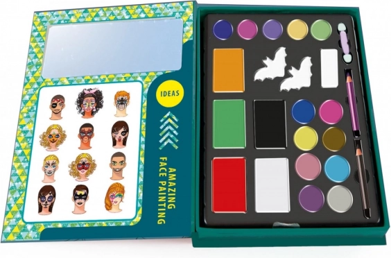 Palette de fards à paupières, crayons pour le corps, applicateur, éponges, trousse avec miroir