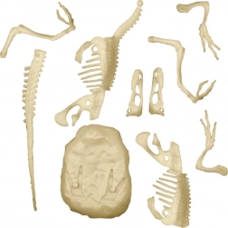 Le kit archéologique ArcheoFun offre aux enfants une expérience d’excavation authentique. Avec un marteau et un burin, vous révélerez pas à pas le fossile caché dans un bloc de sédiments, puis vous assemblerez à partir des pièces trouvées un squelette réaliste de vélociraptor. Grâce au matériau fluorescent, le squelette absorbe la lumière du jour et brille dans l’obscurité, ce qui en fait une superbe décoration pour la chambre d’enfant.