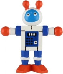Adorable robot en bois de 12 cm qui ravira chaque petit explorateur. Grâce à ses élastiques, il possède des membres et une tête articulés, ce qui permet aux enfants de l’asseoir, le faire tenir debout ou l’arranger de multiples façons. Le jouet développe la motricité fine, la créativité et l’imagination. Convient à partir de 18 mois.