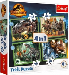 Plongez dans l’univers fascinant des dinosaures avec ce set de puzzles 4-en-1 conçu pour tous les fans du film Jurassic World. Une fois assemblés, quatre superbes images de 285 x 205 mm vous attendent.