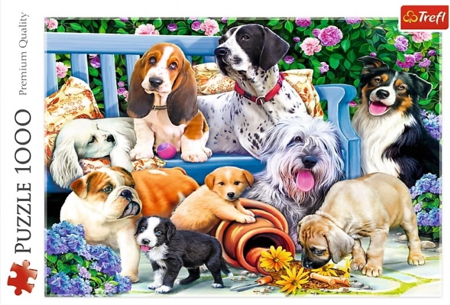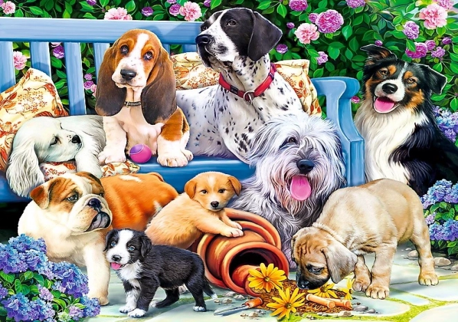 Puzzle Jardin des chiens offre un divertissement avec 1000 pièces formant une belle image de chiens dans un jardin. Matériaux de haute qualité et papier calandré pour un assemblage facile.