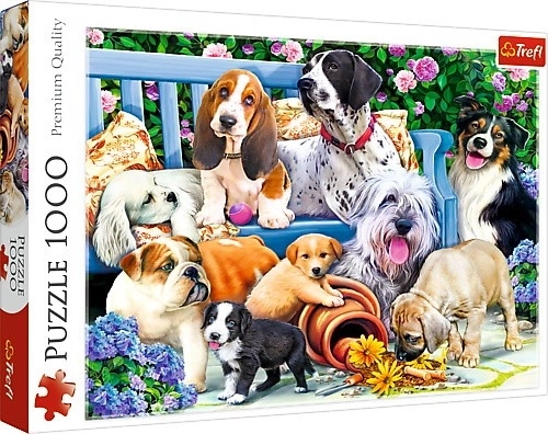 Le puzzle Jardin des chiens 1000 pièces est un moyen idéal de passer son temps libre. Cet ensemble représente une image de chiens dans un jardin mesurant 683×480 mm une fois assemblée.